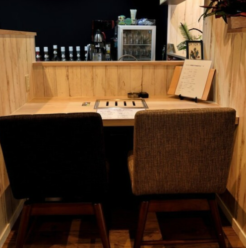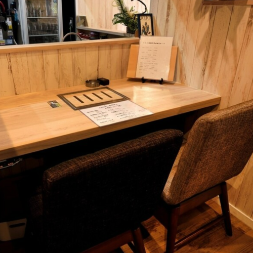 2名様カウンター席は全2卓。お一人様からお使いいただけます。普段使いやお仕事帰りのお立ち寄りはもちろんのこと、白をベースカラーに使用した洗練された雰囲気はデートでのご利用にもおすすめです。隣のお席と区切ってありますので、カウンター席ながらもプライベート感がございます。